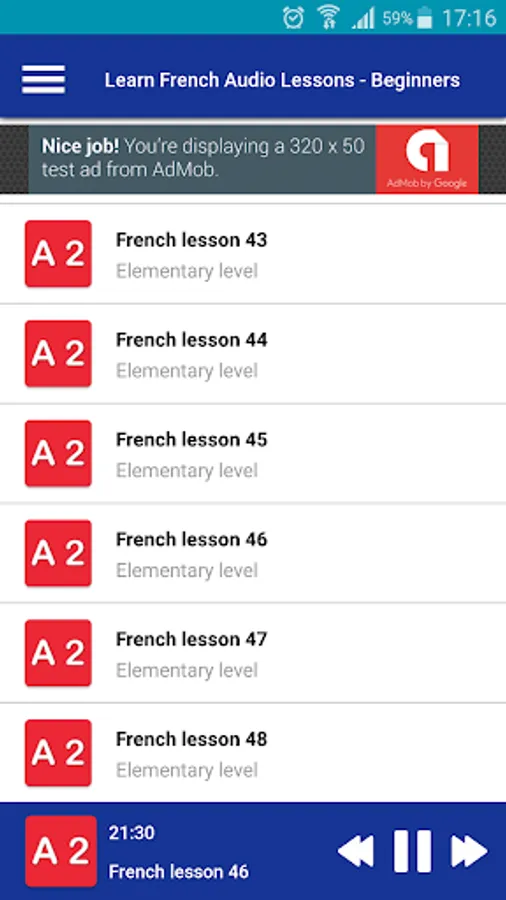 Learn French audio lessons is a light introduction to French grammar and vocabulary. This application is based on level A1 of the Common European Framework of Reference for Languages; Beginner’s level and contains free audio lessons to learn French on the go. Enjoy learning french anytime, anywhere!