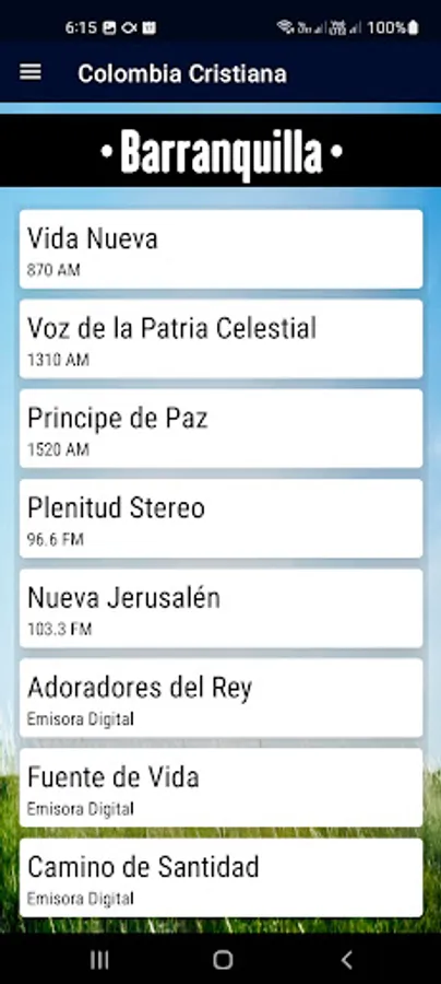 Barranquilla: New Life 870am Voice of the Heavenly Homeland 1310am Prince of Peace 1520am Plenitude Stereo 96.6fm New Jerusalem 103.3fm.