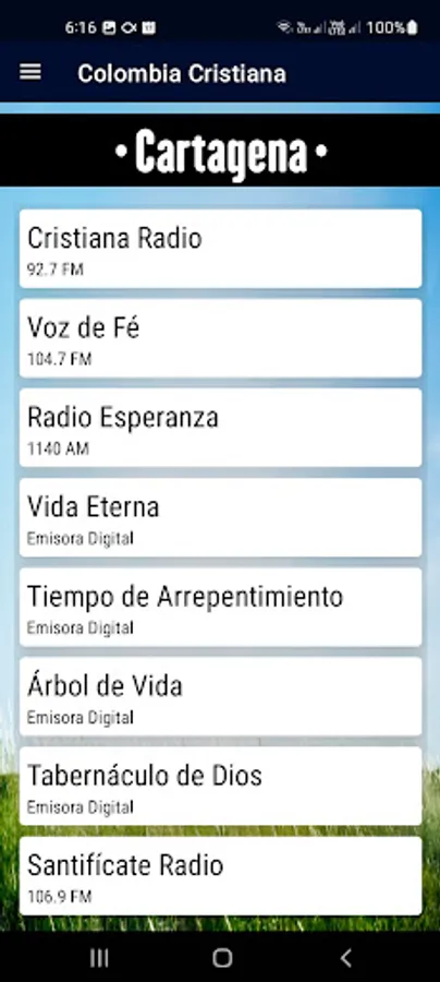 Cartagena: Cristiana Radio 92.7fm Voice of Faith 104.7fm Radio Esperanza 1140am.