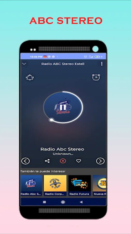 "Radio ABC Stereo Esteli NIcaragua" on your mobile, live and free. The best Animation, Music & News... The FM radio that you like so much always available in your pocket. Free and online!