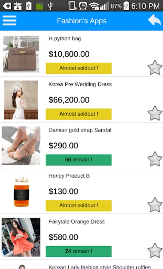 This is a Korean fashion shopping mall mobile application, buyers can navigates throughout the mobile shop to snap their items such as dress, shirts, jean, cloths, shoe and other accessories etc. Using our payment, buyers can delivery the payment and waiting for their favourites come to their home.
