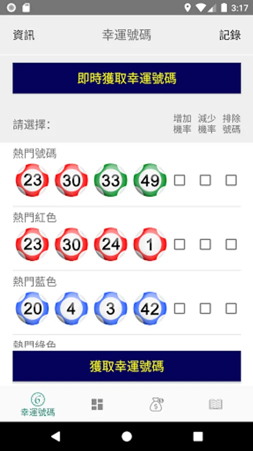 7. Save each group of lucky numbers and check them at any time