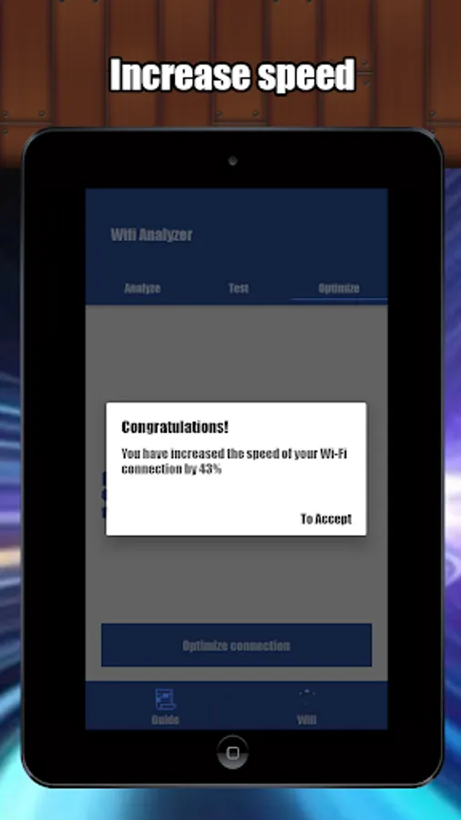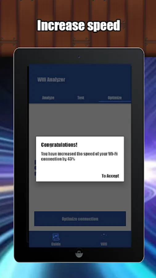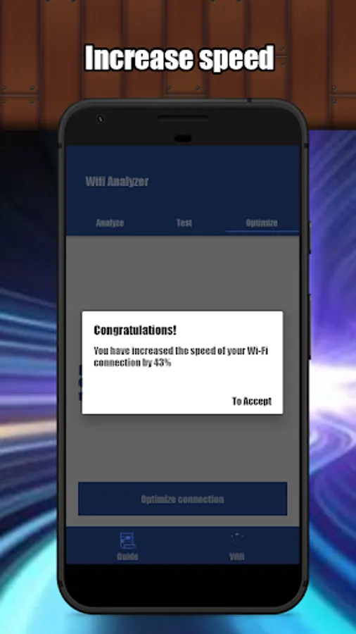 The third section is our wifi optimizer, once you have done the analysis of connections, you can press a specific button with which you can improve your connection, this is due to an algorithm that we have developed, simply, if we detect that your signal has too many interferences and that there is another signal to which you can connect under the same connection, we will change the signal, doing so, that there is not so much traffic in the signal and therefore you increase the speed of your wifi connection thanks to our wifi analyzer.