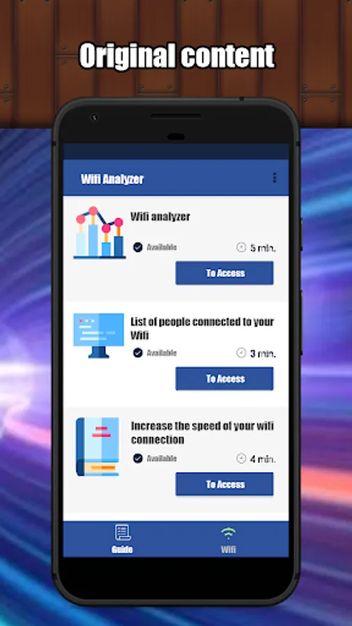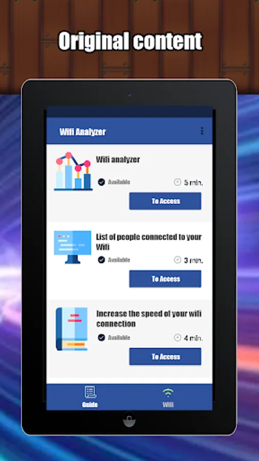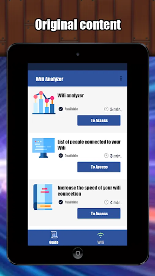 When you open our wifi analyzer, you will find an explanatory content, this will help you understand how to use the application, once you are clear about the use of our application, you will see three important sections.