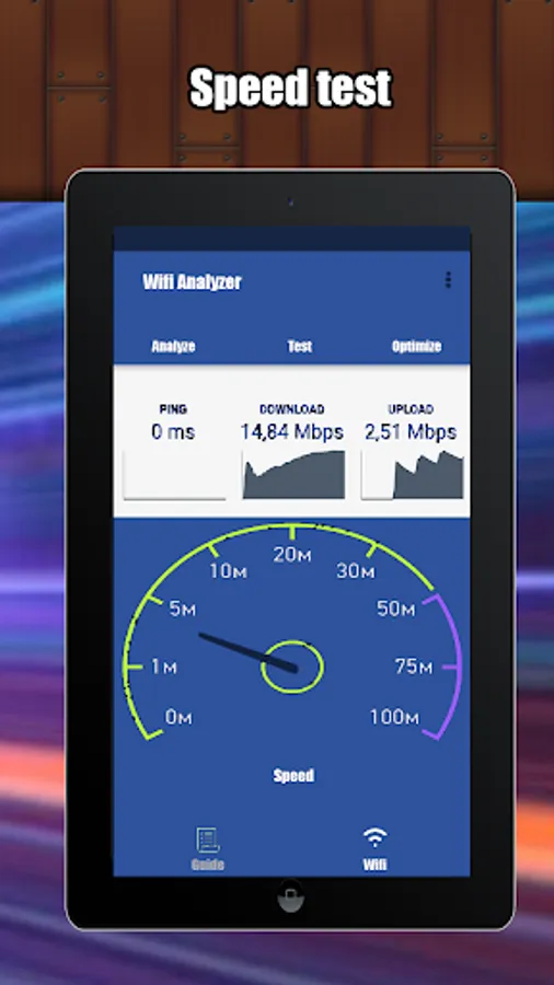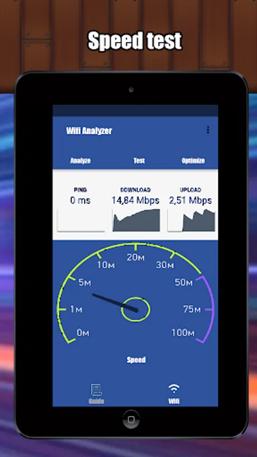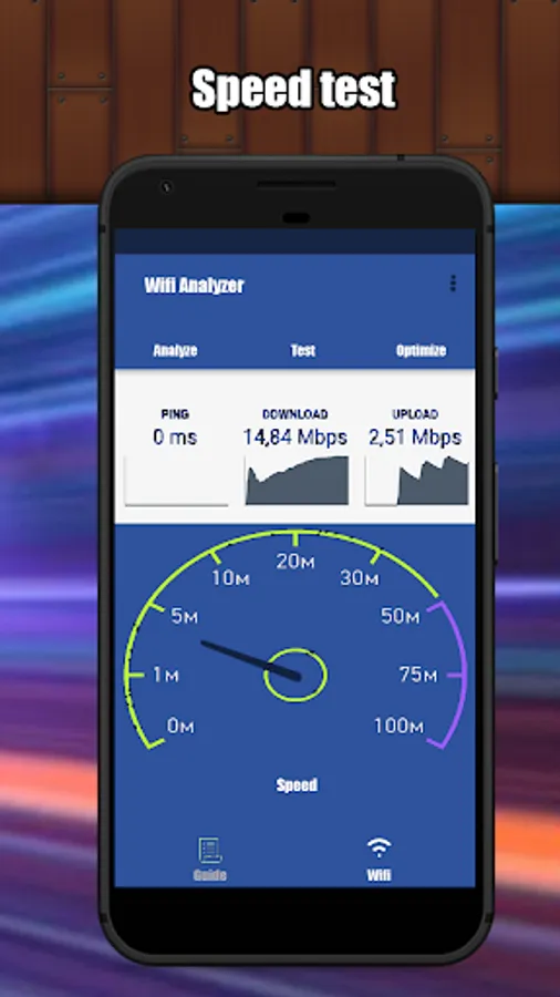 The second section is a wifi speed test, so you can know if your connection is slow or if it is fast. Maybe, you have a very bad signal and do not realize it, it's time to know, in order to improve your Wi-Fi connection thanks to our analyzer in which we have incorporated a speed test that will tell you the pin, the uploads and uploads. down.
