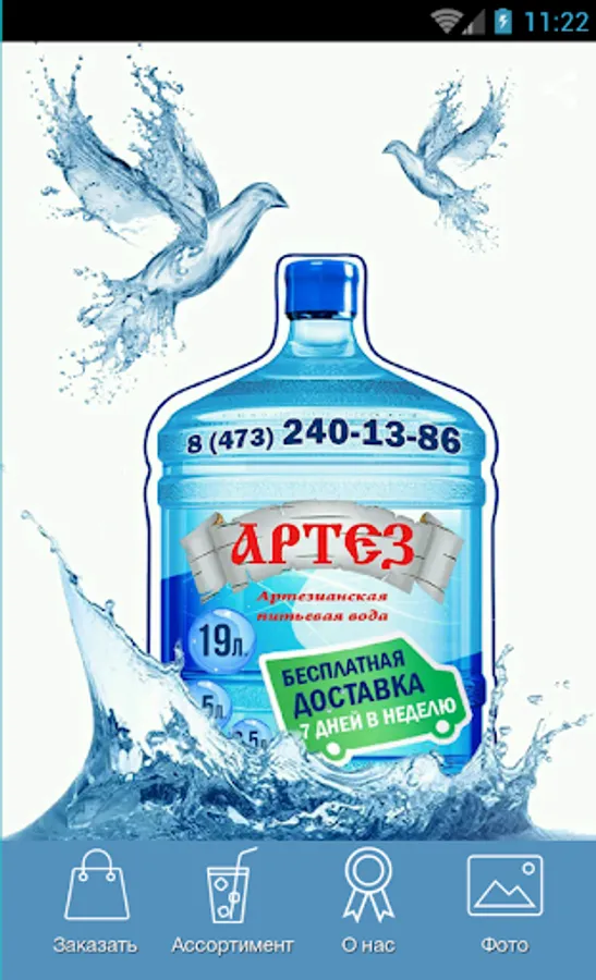 We care about our customers! App created specifically for this purpose. Now you do not need to waste time on phone calls and do not need to carry heavy bottles from the store. Ltd. "Mercury" has been producing drinking water "Artesia" in the ecologically clean area of the Voronezh region of the second layer divonskogo.