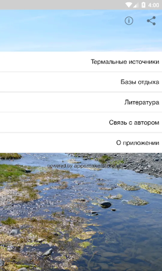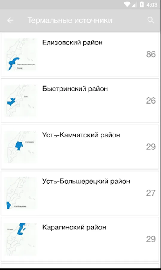 The appendix provides information on the main thermal springs of the Kamchatka Krai (Russia), as well as on recreation bases located on the hot springs of the Kamchatka Peninsula.