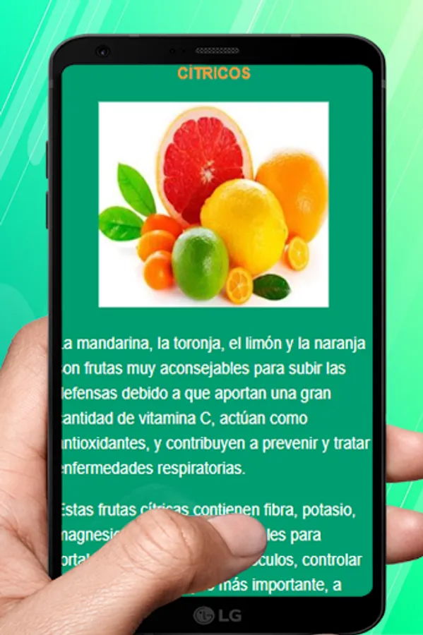 This app contains relevant information to learn how to raise your defenses thanks to a good diet and recommended natural drinks.