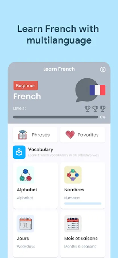 Fast-Track Your Progress: Eager to learn French quickly? Our app is tailored for beginners seeking rapid progress. Our carefully curated lessons, focused on essential vocabulary and practical phrases, accelerate your language journey without compromising comprehension.