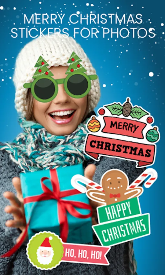 2021 Christmas Photo Editor has plenty of Christmas stickers for photos like Xmas tree, snowman, winter, reindeer, Santa Claus, garlands, snowflakes, stockings, sleigh bells, ornaments, presents and more cute anime Christmas decor. You can choose to select our Christmas greeting cards messages and share send as e-cards via Facebook, Whatsapp, Instagram, Twitter and many more. Or set as Christmas wallpaper.