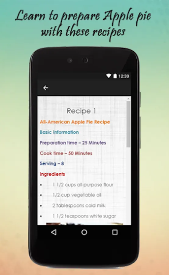Note:-This Is Content - Only App. It gives you information regarding delicious recipes of apple pie.