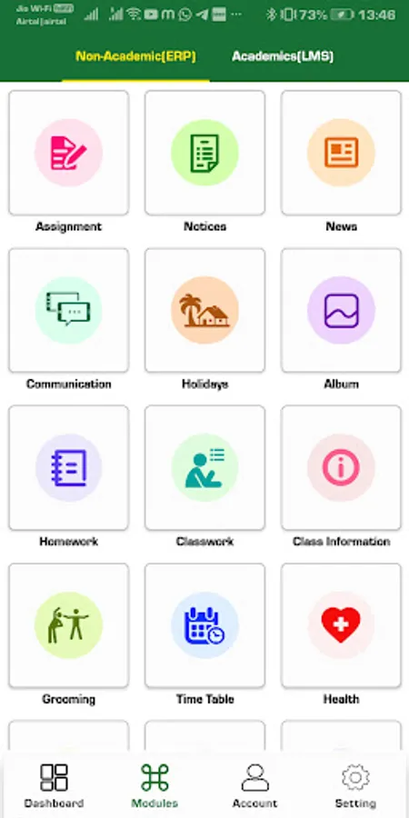 Academic and Non-Academic modules separately placed.