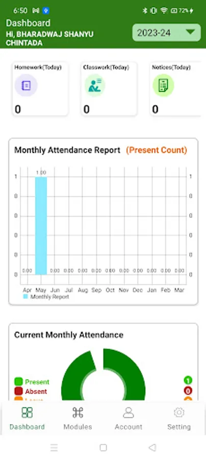 A monthly dashboard for Parents is a new feature that contains Fees, Attendance report, daily homework, assignment, classwork, circular etc.