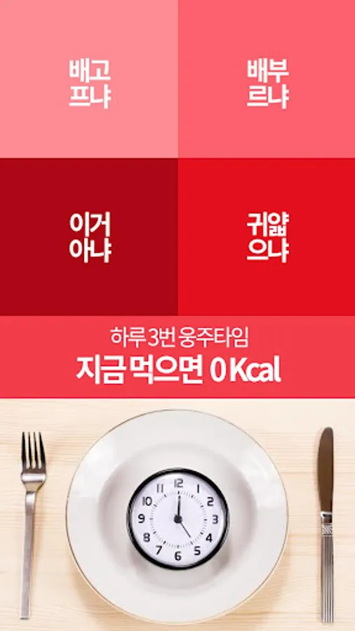 "지금 먹으면 0칼로리! 웅주타임" 알람이 오면 칼로리는 잊고 뭐든 맛있게 먹어요.날씬한 사람들 다 이렇게 해요~