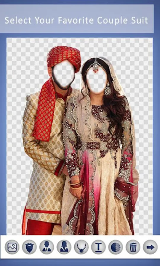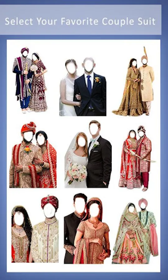 This couple photo editor is just an application which lets you adjust your picture using different suits very nicely with stunning backgrounds. This app contains a lot of different traditional couple photo suit.
