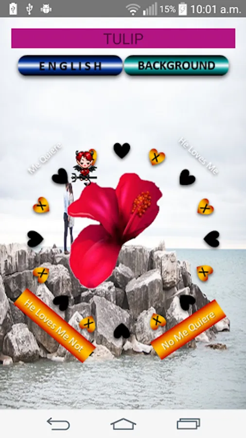 Play Choosing A Flower ... Then Touch The Flower To Remove The Petals And Discover If "He Loves You" Or "He Not Loves You" ... You Can Also "Kill" The Animated Flying With Touching Them.