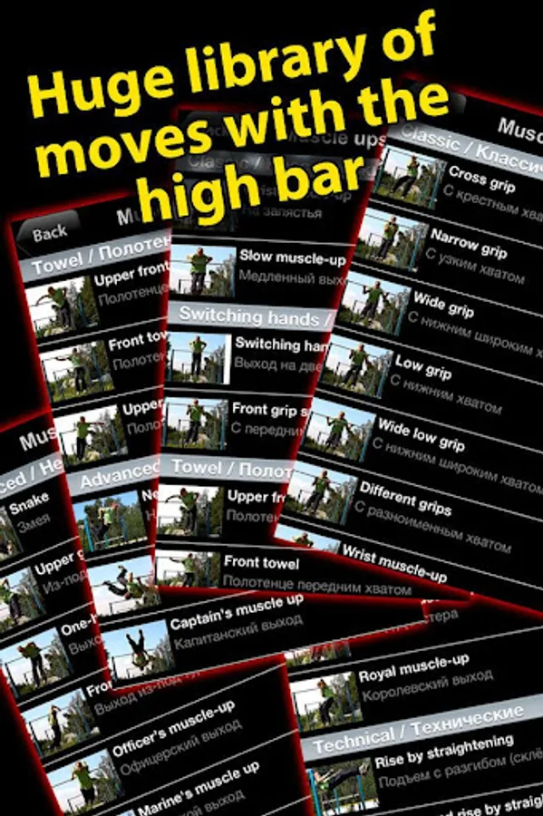 Learn 60 pull-ups, dismounts and tricks with Russian Spetsnaz Pull-up Training System by watching the tricks in SLO-MO animations which you can control frame-by-frame.