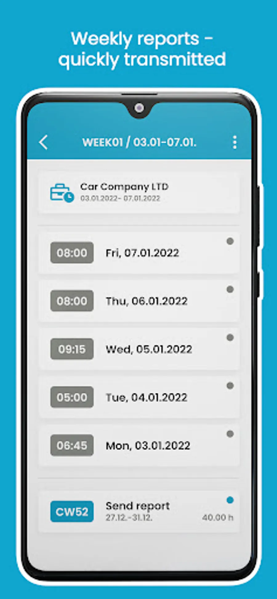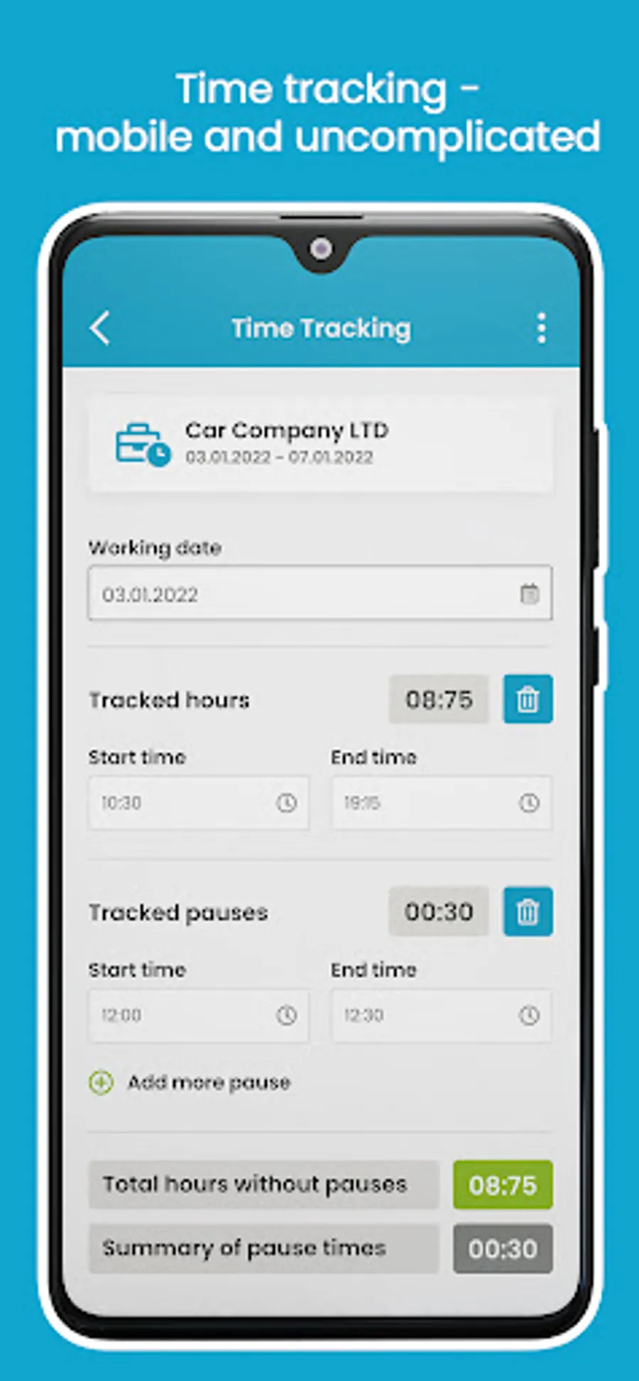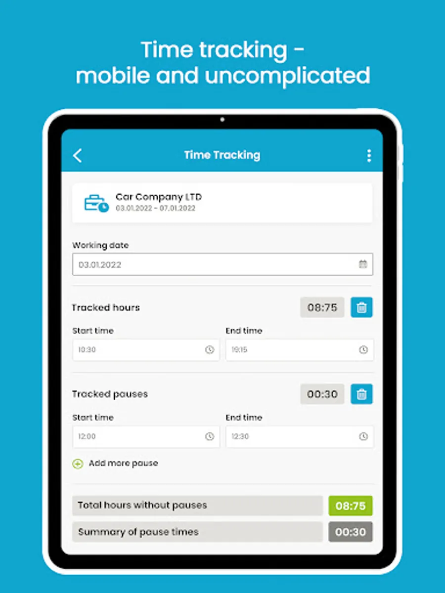 - Recording of working hours