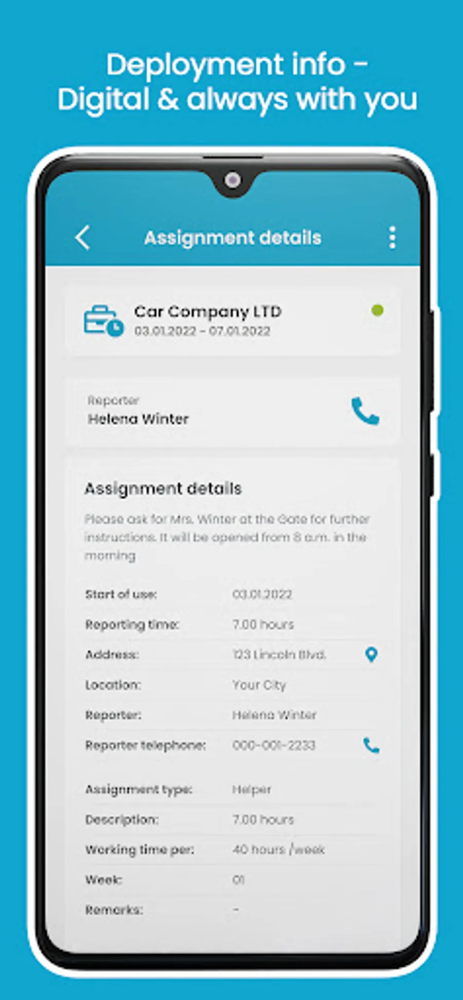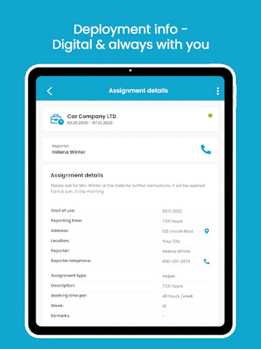 The app has an authorization concept for your target groups - external employees/temporary workers, your customers, and clerks/dispatchers. Depending on the status of the user, the app has the following functions: