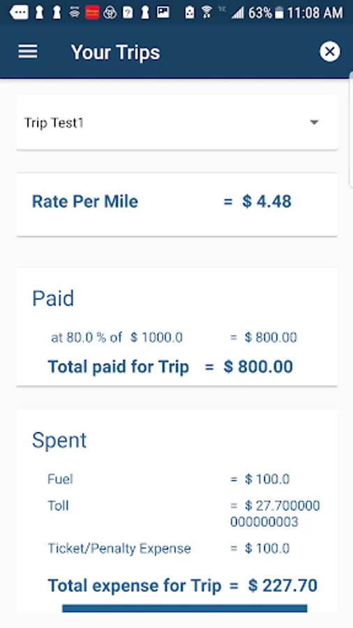 - Add expenses during the course of your trip including fuel charges, tickets, and food charges.