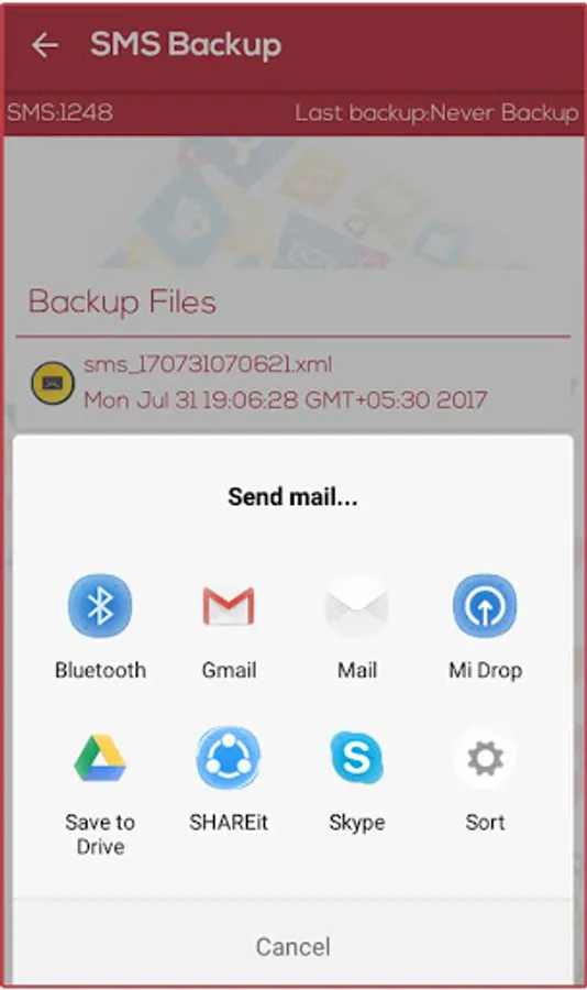* All backup files are stored in SD card named “SMSContactBackups” folder.