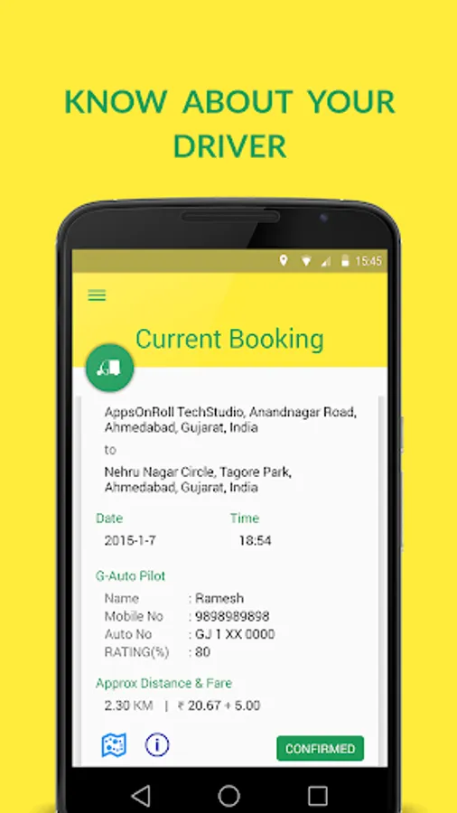 4. Once your booking is confirmed, you will get the details of the G-Auto pilot on the app