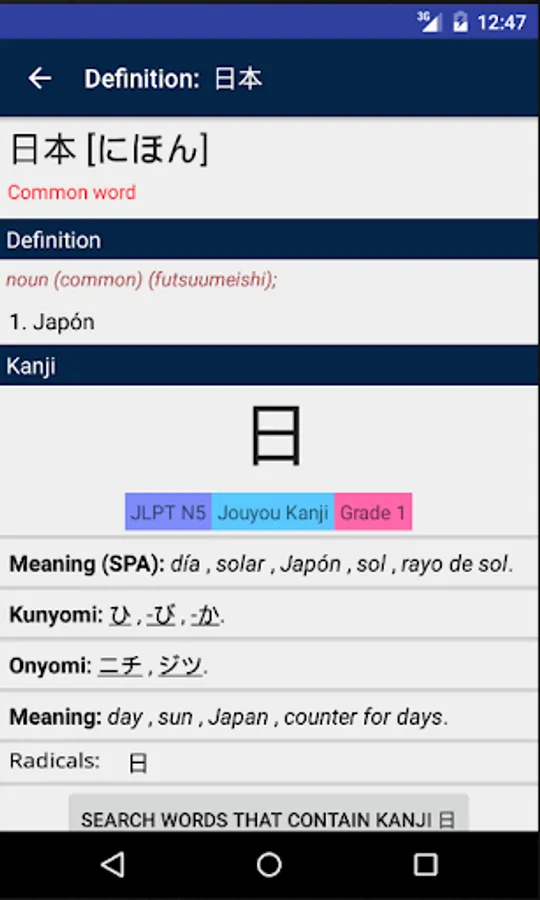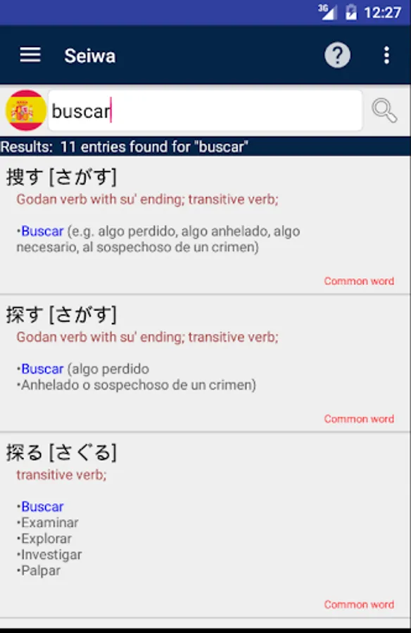 Seiwa is an offline, lightweight Japanese-Spanish, Spanish-Japanese dictionary based on Hispadic, KANJIDIC2 and Tomoe databases.