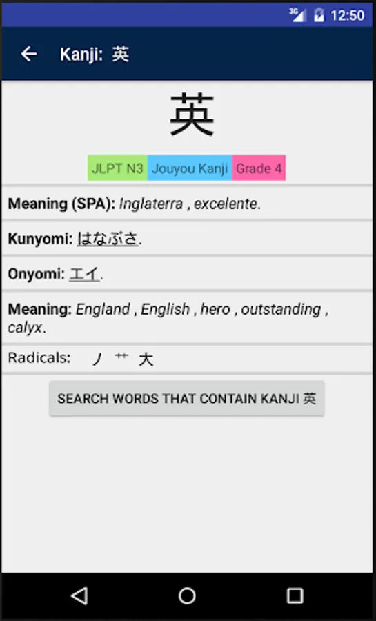 -Kanji search by meaning, literal and kun/on-yomi readings, with +9000 entries