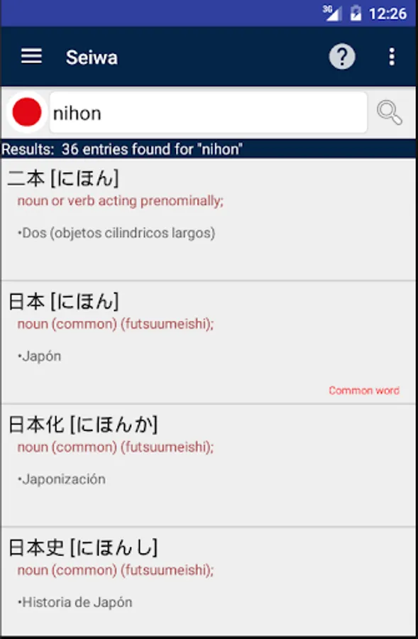 -Word search (Spanish-Japanese, Japanese-Spanish) with +31000 entries