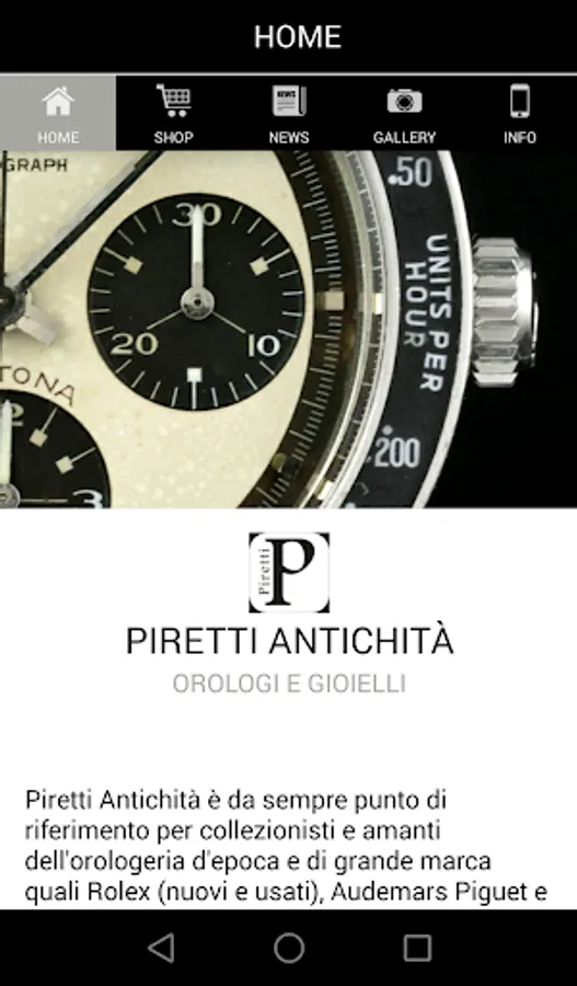 Piretti Jewellery Bologna has always been a point of reference for collectors and watch lovers and antique stores like Rolex (new and used), Audemars Piguet and Patek Philippe. With our App you will have at hand a wide selection of models of vintage watches, modern and collectible, you can contact us for purchases and sales of watches and you will be informed about our news.