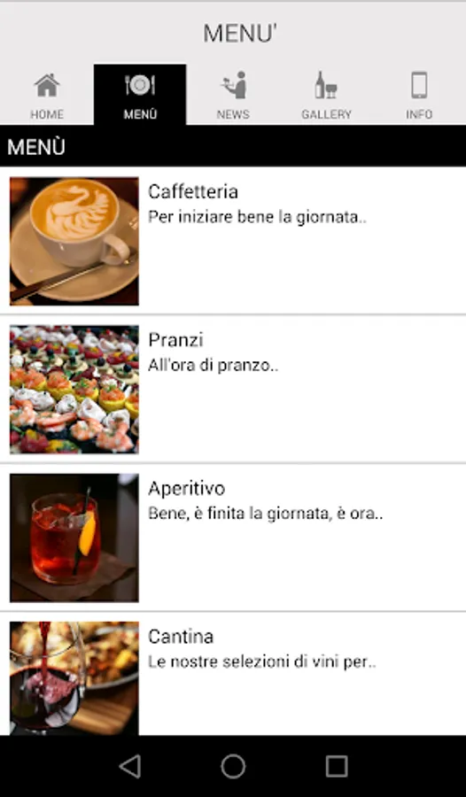 The wines of excellence and a wide range of aperitifs, will be accompanied by finger food prepared with seasonal refined and exclusive with a focus on vegetarian food.