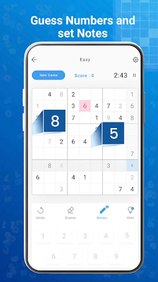 Solve every level and move up to the next to master this amazing Sudoku game. You will also get multiple features such as Note If you are confused about what number would fit just make a note of it, later you can delete it with the Erase option. You can undo the number you wrote, and most importantly you get 5 hints to help you in becoming a pro of the game.