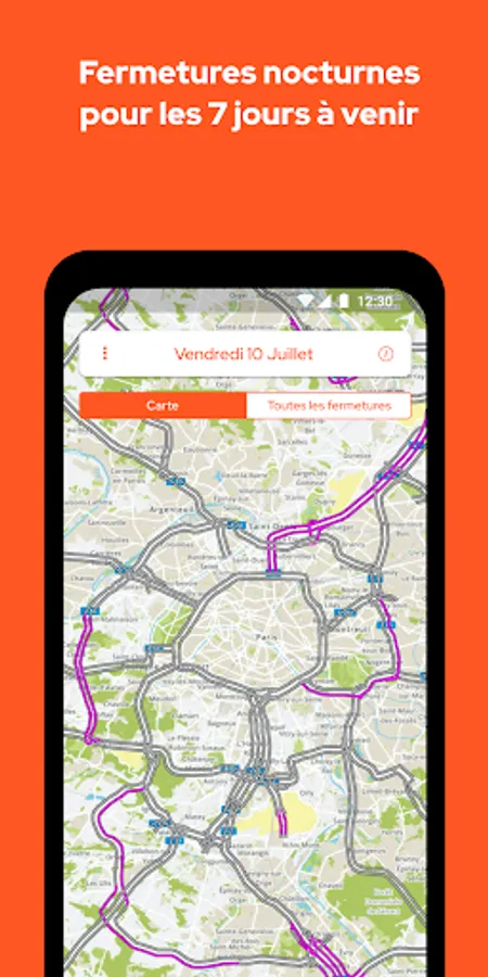 • Provisional information, including in particular road closures planned for the next 7 nights;