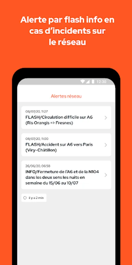 • Integrated information, with the type of event (incident, breakdown, accident, site, etc.), its location, its origin, its description, its impact on traffic and, when possible, the foreseeable duration of disturbances.