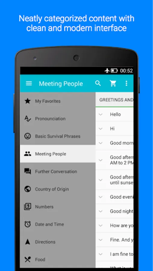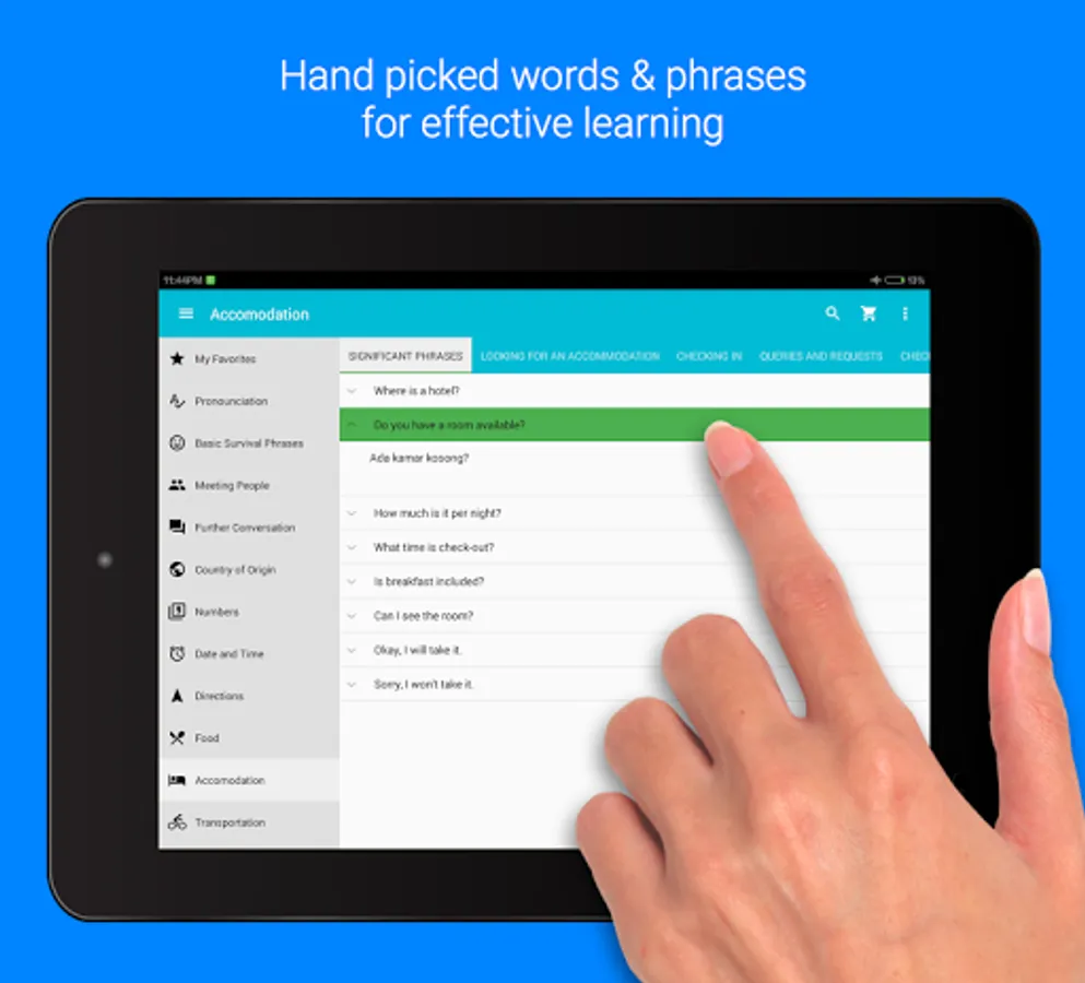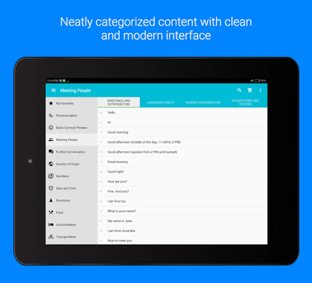 - Big content, essentials words and phrases available in 13 categories.
