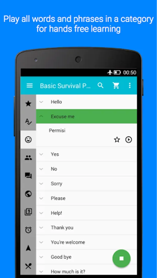 - Play all phrases/words in a category for easier learning