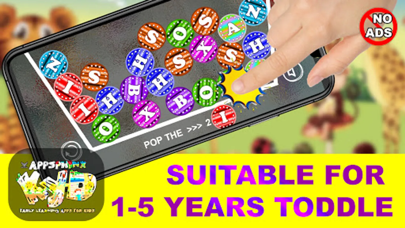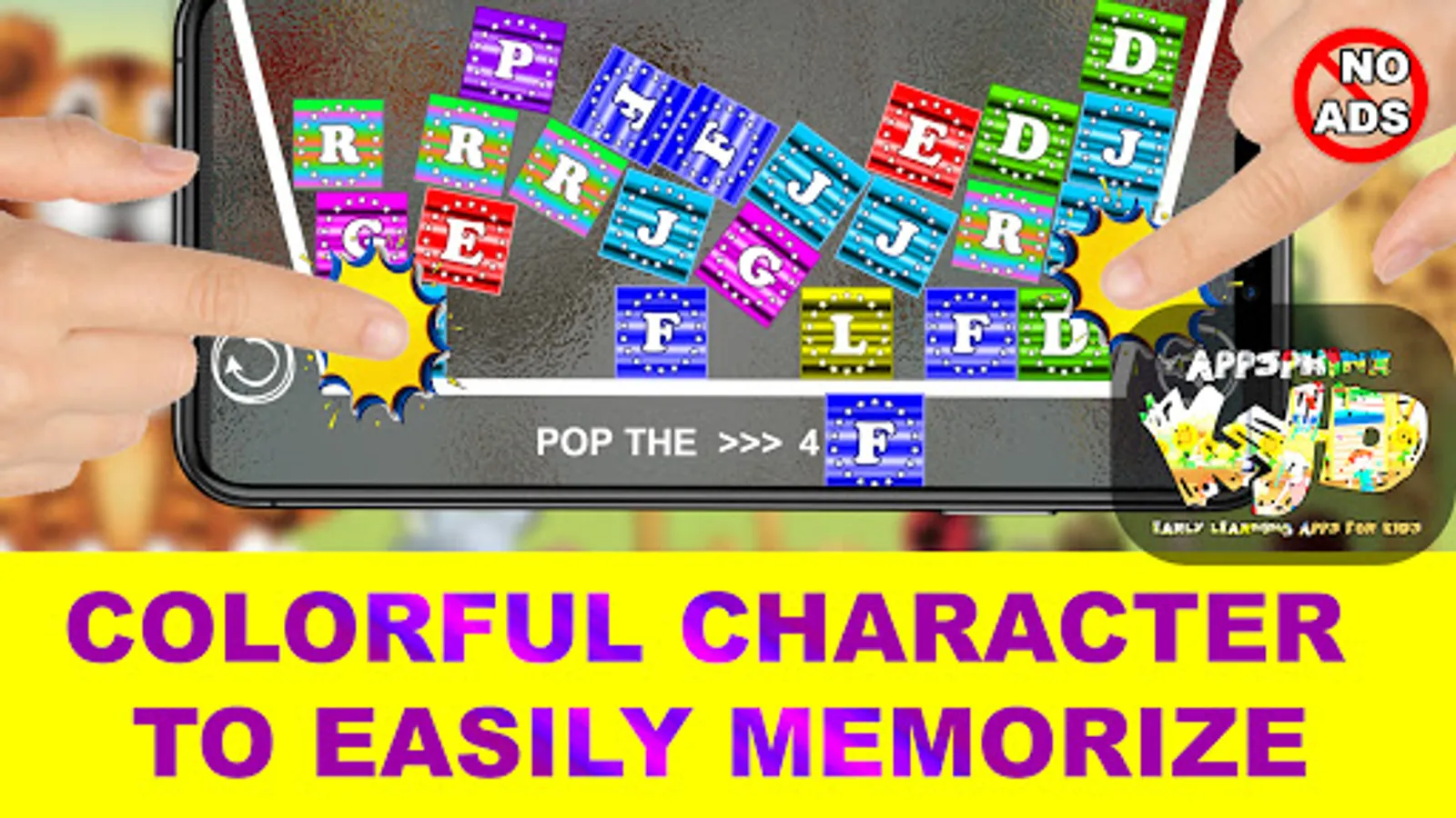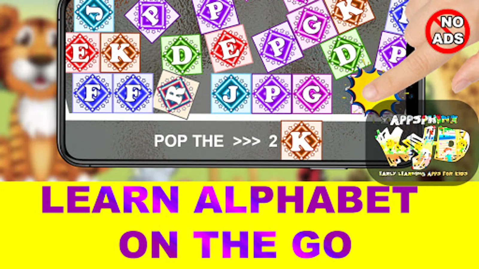 POP THE ALPHABET is a free and ad free alphabet teaching app that makes learning fun for children, from toddlers all the way to pre-schoolers and kindergartners.