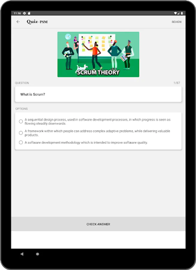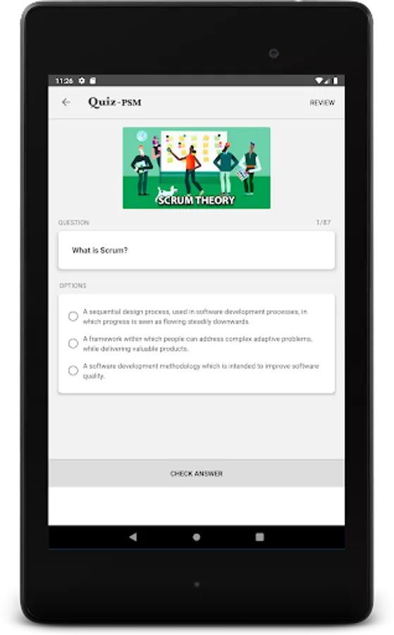 This app provides an easy interface to read the suggested reading on topics like Agile Scrum, Scrum Master, Scrum Guide, Product Owner, Scrum Team, Scrum Artefacts and Scrum Events etc for each certification from 'Scrum.org' and provides an innovative interface for practicing using sample questions.