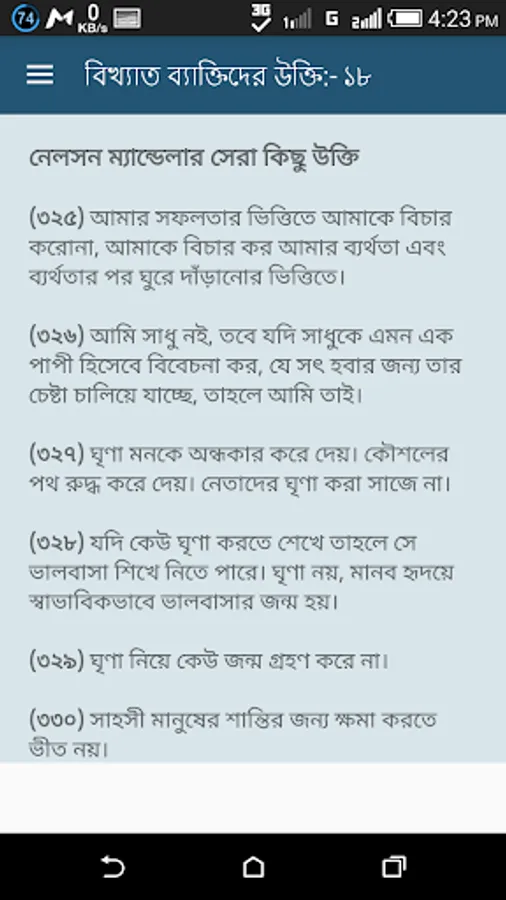 It's a new bangla ukti collection app, every update we will add new ukti. In this bangla ukti app you will get all bangla uktti collection. Everyday you can send bangla ukti sms to your friends and family. Also you can post bangla ukti status on fb. For lovers we added bangla ukti love for share ukti kotha to each other.We also collect islamic quotes so you can learn islamic knowledge from this famous person quote bangla app.