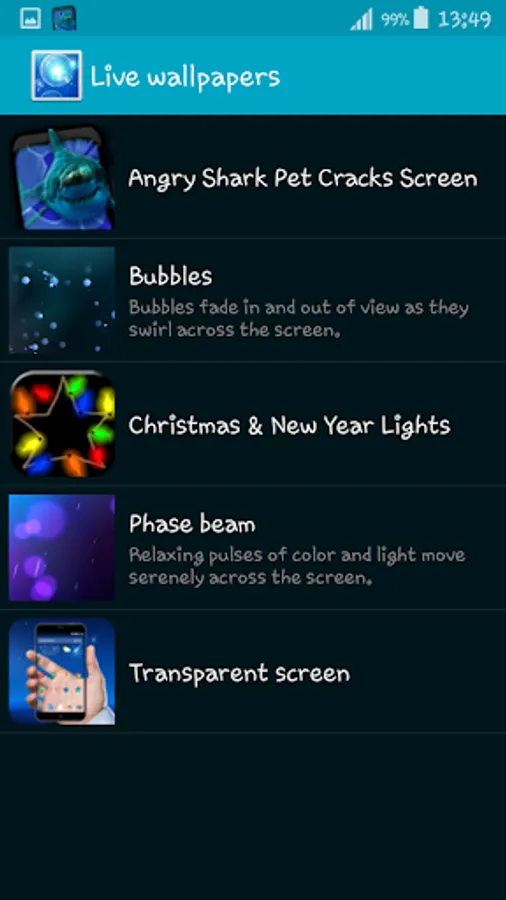 Being one of many cool market animated apps available, our cool interactive application can be run on all old and modern phones or tablets, or be seated right back behind your home screen launcher or lock screen background as a live wallpaper or as home window overlay on devices running Android OS 2.1 and above. It provides an entertaining, almost instant cheerful action and holiday mood anytime and anywhere you go.