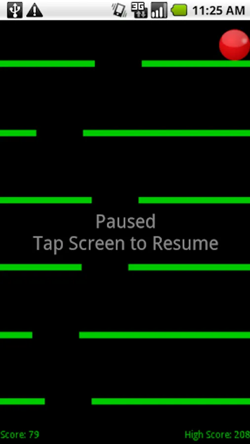 Use the accelerometer to navigate the ball down through the levels. If the ball hits the top of the screen, then it's Game Over.