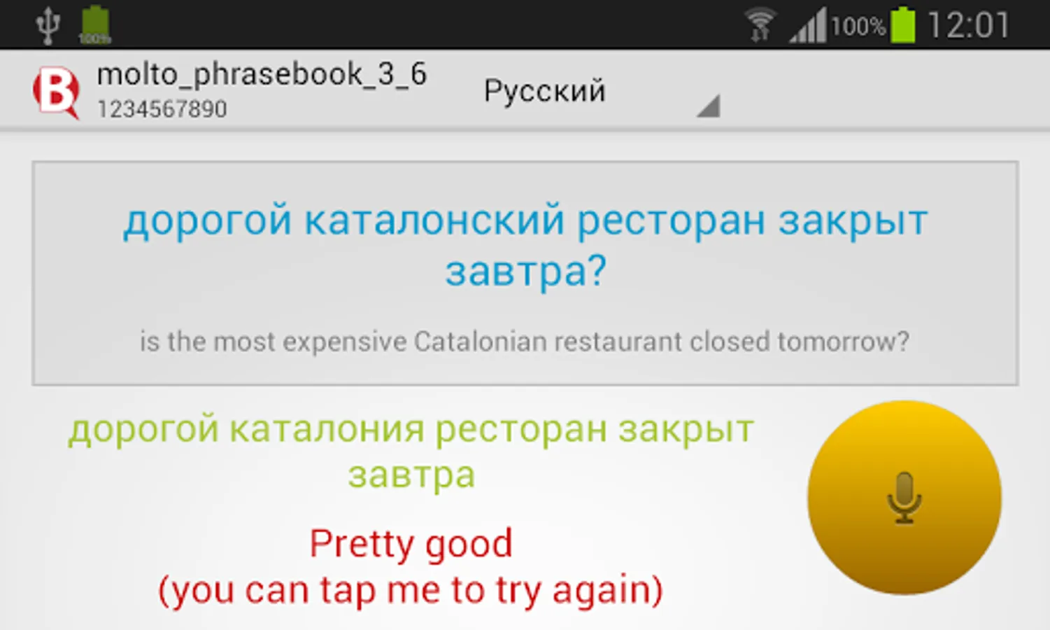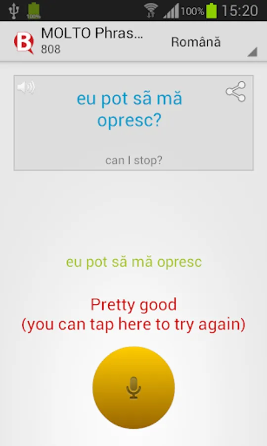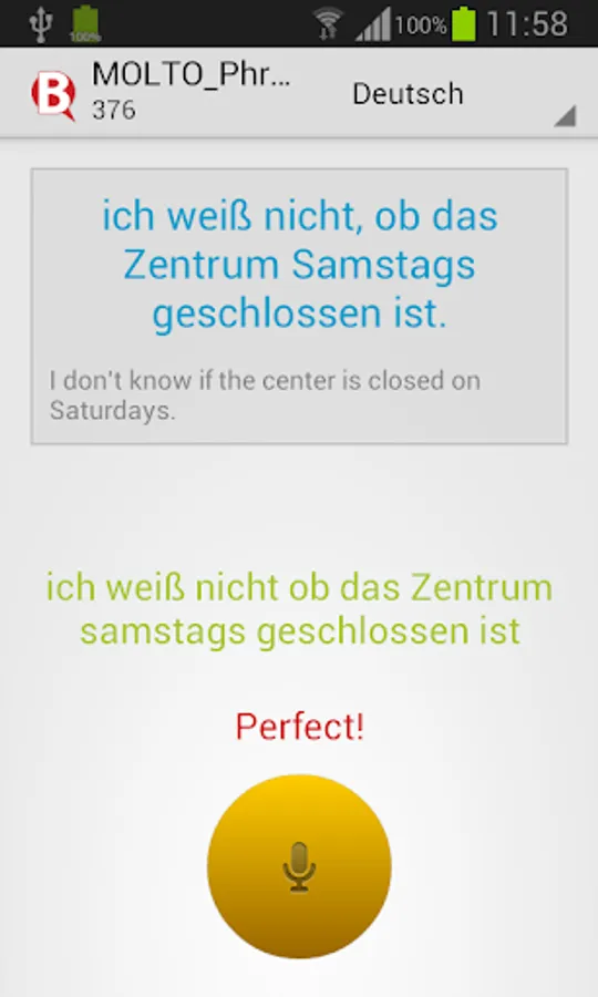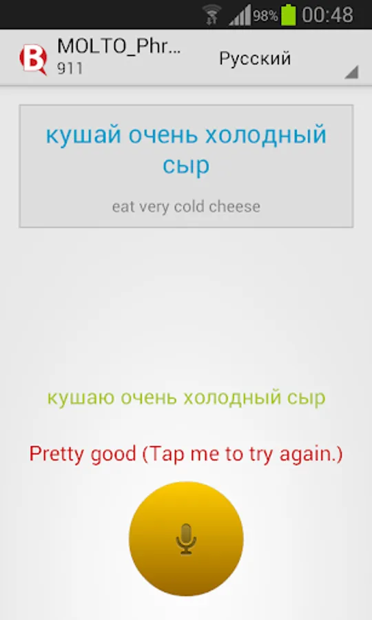 - tap on the big yellow button and read out loud the displayed text