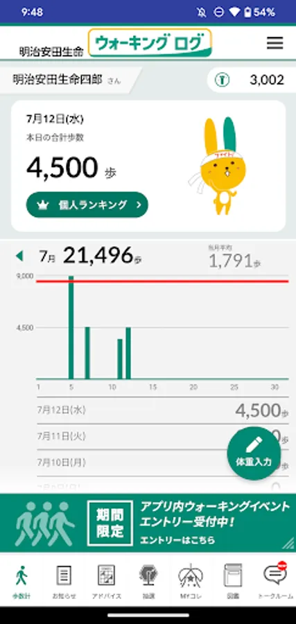 A walking app for employees of Meiji Yasuda Life.
