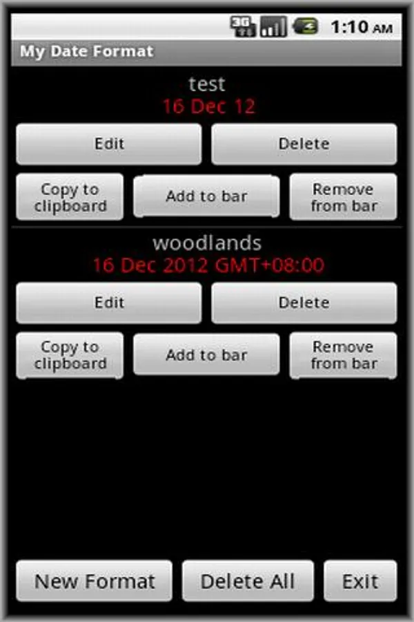 For users who are not satisfied with the provided set of date and/or time format in your Android phones, this little app helps to make it easier. You get to setup your own user-defined date and/or time format. Then you get them to be copied to clipboard so you can paste that date format string in all your notes or any app that require different timestamp.