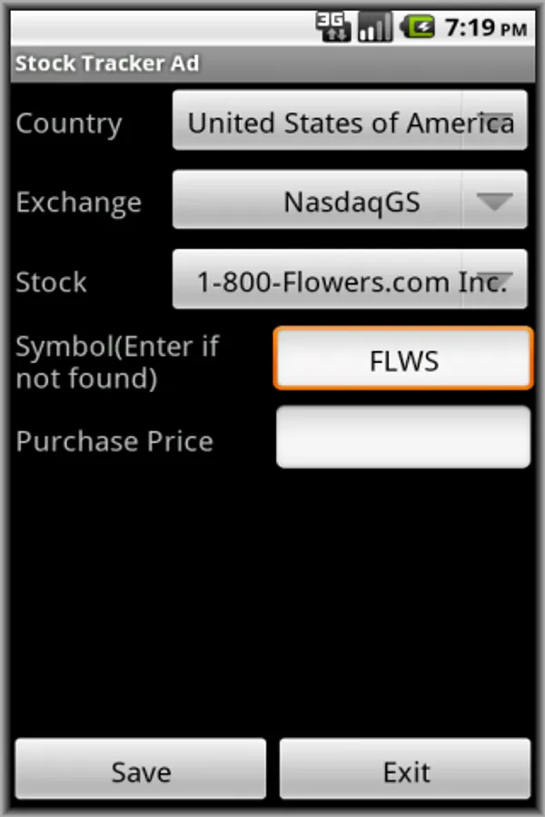 Tap Setup Stock to save the stock symbol you want to view. Set your purchase price too. If you cannot find any from pick-list, enter the stock symbol manually. Tap View Stock to see your stocks performance.