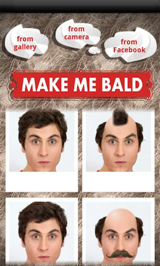 - After picking an image, this app has a fun shaving effect where you use your finger to shave the hair off the picture.