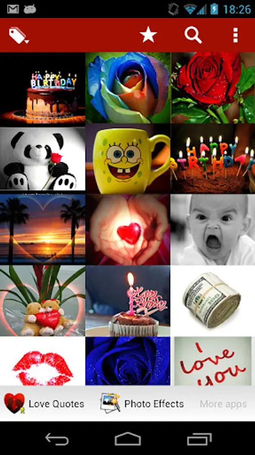 You can send your greeting card by email or any social sharing app you have installed on your Android. No matter whether you need it for a birthday, holiday or something else, this app lets you select a cool image from a selection of thousands of nice pictures.