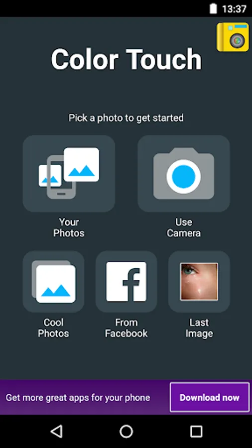 - Import photos easily from your photo gallery, photo album, camera or from Facebook into this picture editor