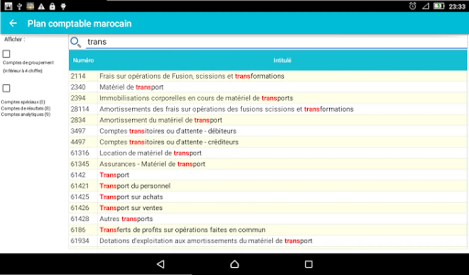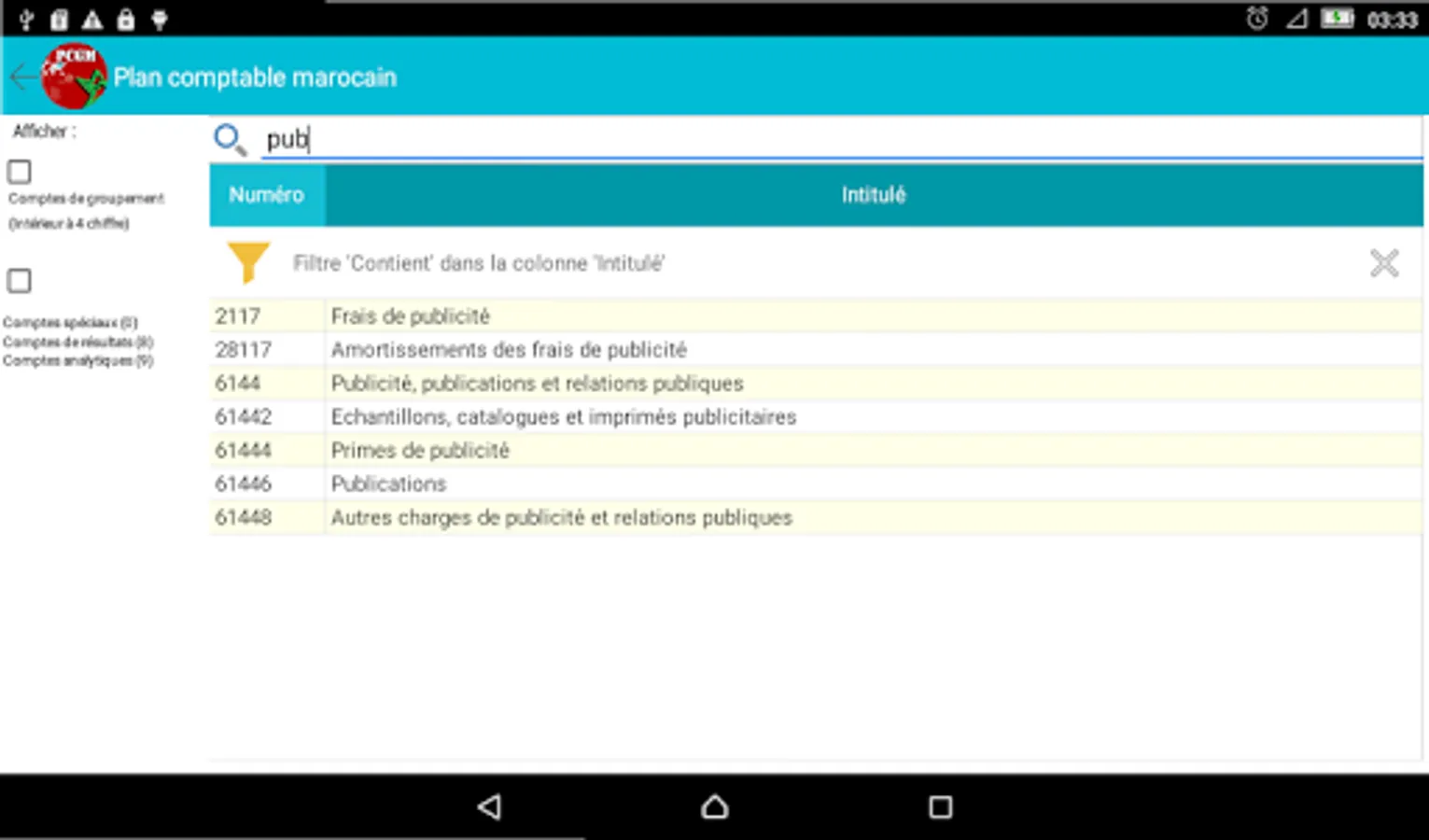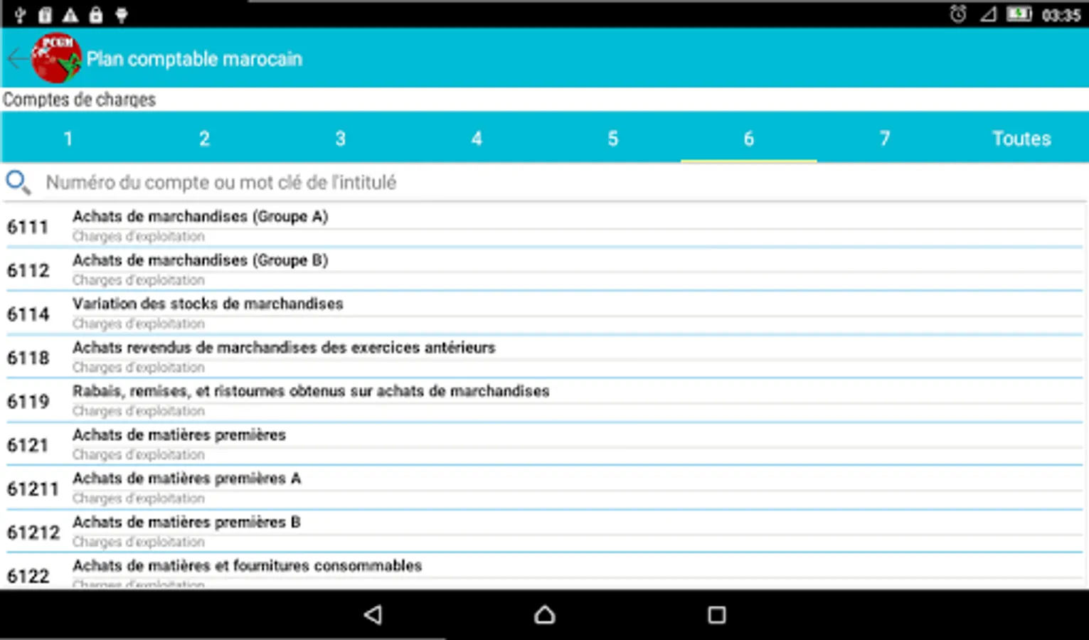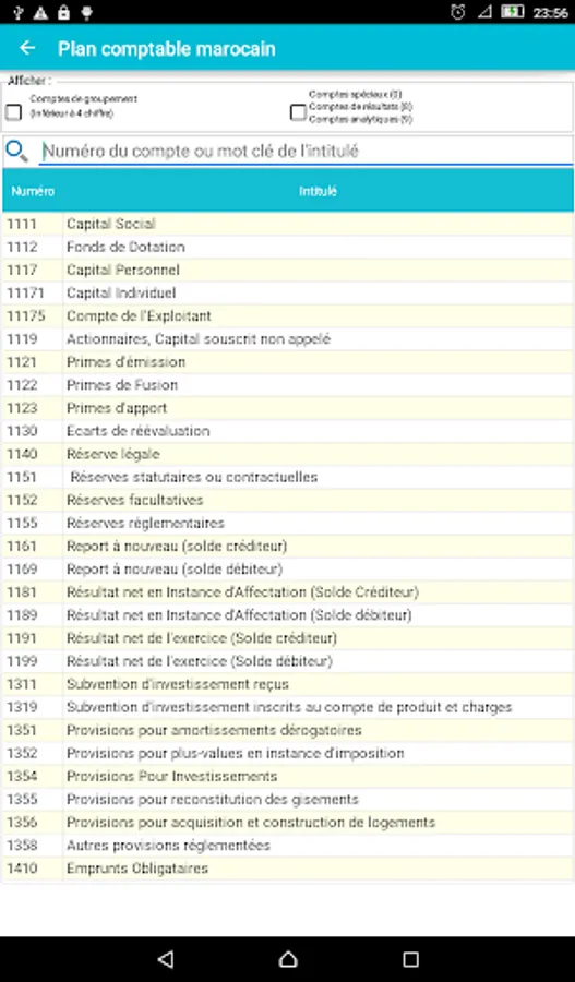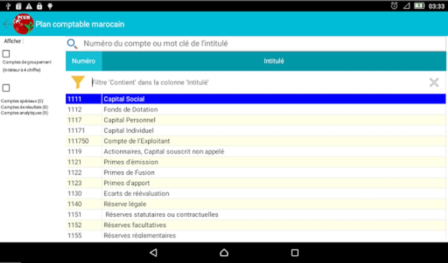 The chart of accounts is the basic tool in the field of accounting and the Moroccan finance.l'application Accounting Plan (Gaz Métro Authorized Partner) allows you, for its ergonomic design and the search and filter functions, ease your accounting and financial tasks you soyer professional or student in the field.
