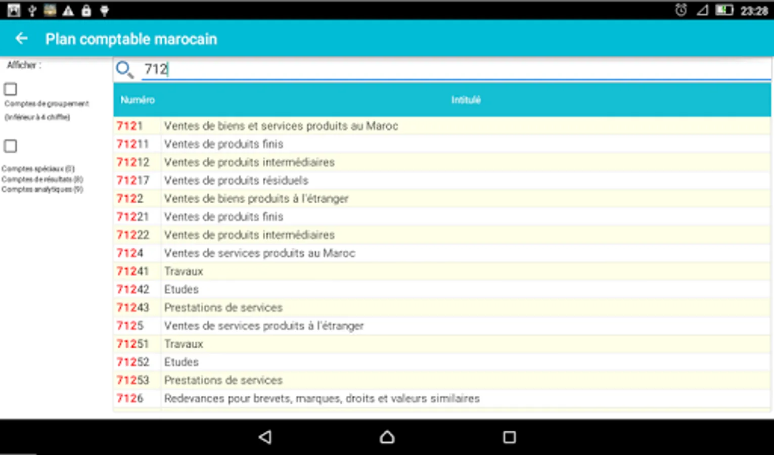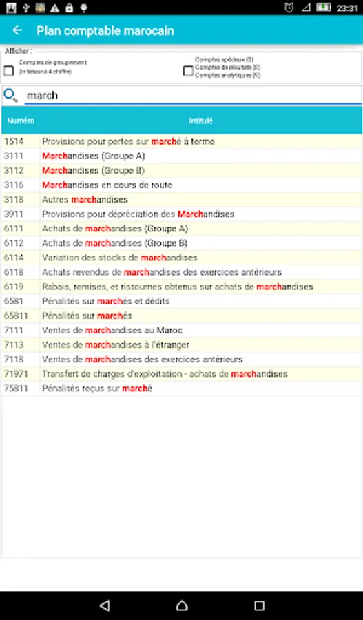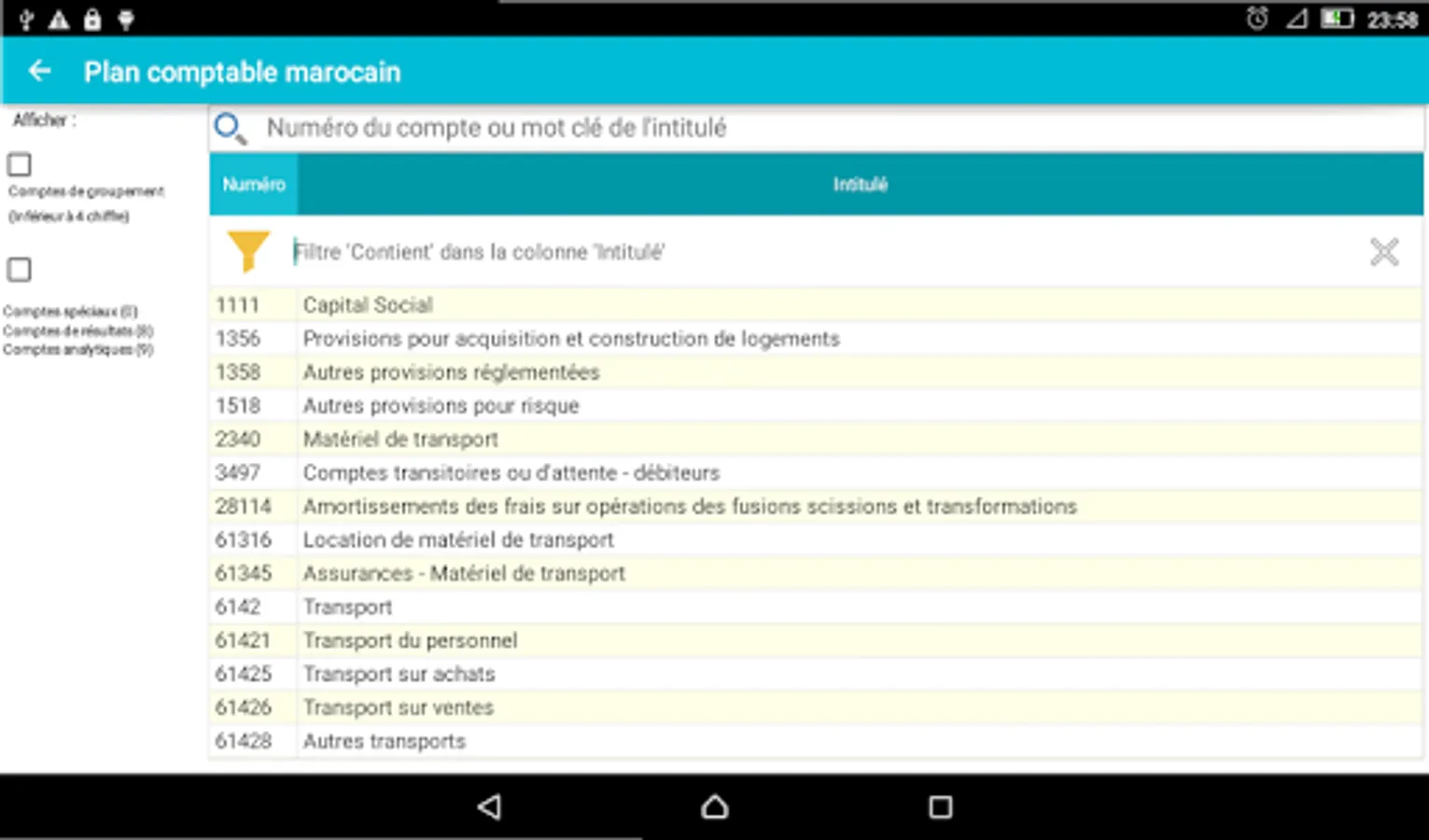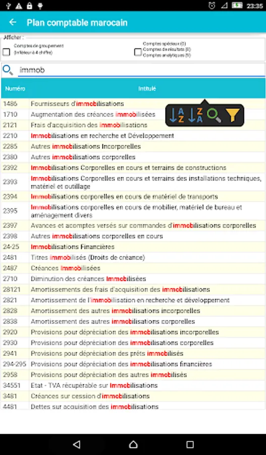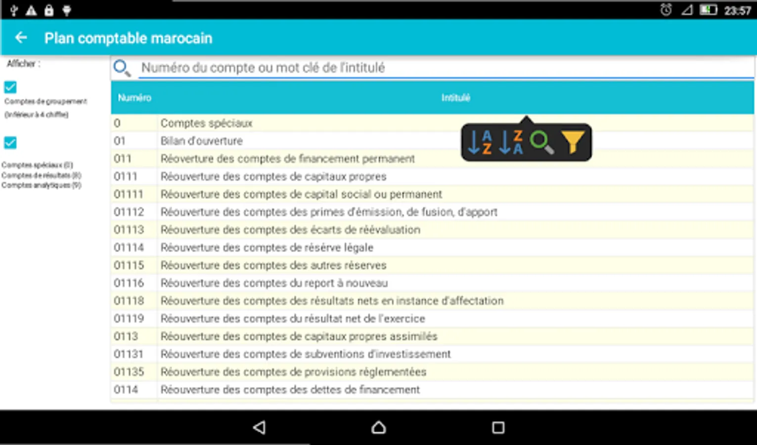 The chart of accounts is the basic tool in the field of accounting and the Moroccan finance.l'application Accounting Plan (Gaz Métro Authorized Partner) allows you, for its ergonomic design and the search and filter functions, ease your accounting and financial tasks you soyer professional or student in the field.